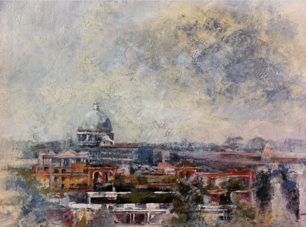 A través de este cuadro, denominado “Cónclave” donde reflejo la Capilla Sixtina en el momento de la fumata blanca, me gustaría hacer mi particular homenaje al Santo Padre Benedicto XVI, fallecido el pasado 31 de Diciembre.