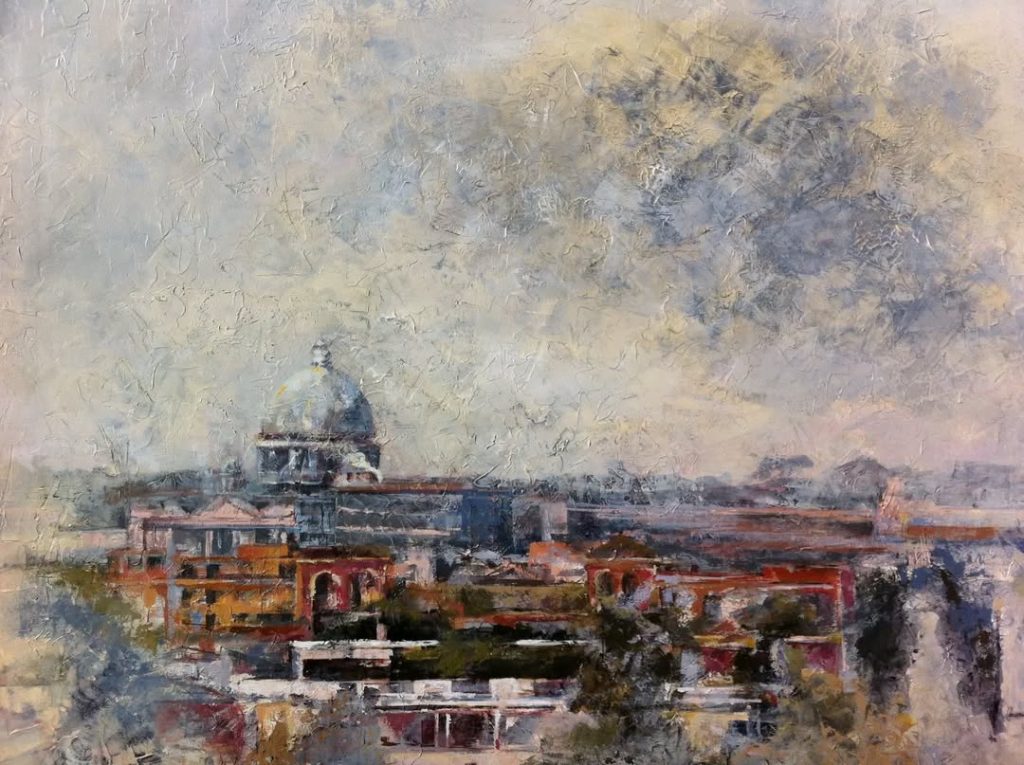 A través de este cuadro, denominado “Cónclave” donde reflejo la Capilla Sixtina en el momento de la fumata blanca, me gustaría hacer mi particular homenaje al Santo Padre Benedicto XVI, fallecido el pasado 31 de Diciembre.